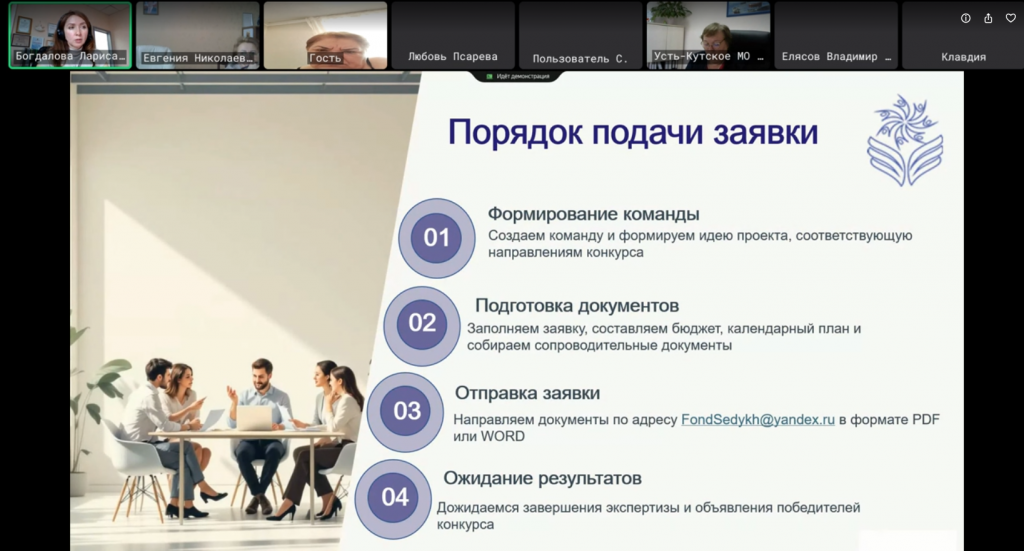 07 апреля прошел установочный вебинар в рамках объявленного грантового конкурса «Вектор Север» , в мероприятии приняло 58 участников — представителей организаций Нижнеилимского, Усть-Кутского районов и Мирнинского района Республики Саха (Якутия).